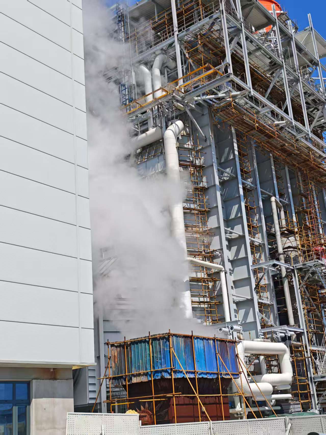 8月25日,二公司承建的臨港重燃項目2號保障機組點火吹管工作圓滿完成,為接下來的整套啟動和168小時試運行打下堅實基礎。 2號機組建設1套H級“一拖一”單軸布置的燃氣-蒸汽聯合循環發電機組,凝汽器側向排汽。燃機采用西門子SGT5-8000H型燃機,發電機及汽輪機均采用西門子自產機型,鍋爐采用上海鍋爐廠無補燃三壓再熱型臥式余熱鍋爐,機組聯合循環總容量約為670兆瓦。 本次吹管采用燃機啟動后全速空載,吹管蒸汽不經汽機閥門,采用斷開跨接的連接方式。利用燃氣余熱加熱余熱鍋爐產生蒸汽,對余熱鍋爐高、中、低壓系統進行蓄能降壓吹管。余熱鍋爐高、中、低壓回路三個系統分開獨立進行吹掃,并打靶驗收。 為確保此次點火吹管順利完成,項目部提前策劃,與總承包、調試、監理及其他建設單位協調配合,對吹管前條件進行聯合檢查確認,同時制定風險預控措施,布設安全隔離圍欄,掛設警示告知牌。在吹管期間,合理排班,實行24小時輪班值守,確保第一時間協調解決突發問題,保證鍋爐吹管高效、優質完成。 在項目部全體職工齊心協力、共同努力下,25日下午6點05分,監理及相關方確認6塊靶板全部符合驗評標準,標志著2號機組點火吹管工作圓滿完成。接下來,項目將進入系統恢復階段,項目部全體職工將再接再厲,為確保早日實現投產目標繼續奮斗。 |