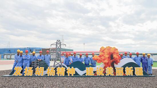 山腳下的胡楊樹挺拔立于在這片荒蕪的天地間,他們扎根于砂礫石深處,在春夏秋冬輪回里增長年輪,在風(fēng)沙和雪花交替間彰顯堅(jiān)韌,靜默地守望著天山。現(xiàn)在,他們有了新的工作——見證無數(shù)來自公司的“胡楊樹們”,扎根于戈壁荒原,把熱情和汗水灑向這片土地,奮戰(zhàn)在特高壓建設(shè)的偉大事業(yè)中,實(shí)現(xiàn)“青山綠水”的祖國夢想。